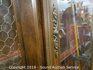 Item Description: Glass shelves with plate grooves. Comes in 2 pieces. In good condition. Approx. 80" H, 52" W, 16" D.
