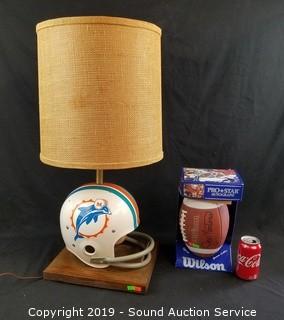 Lot #0207: Miami Dolphins Helmet Table Lamp & Wilson Football
