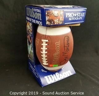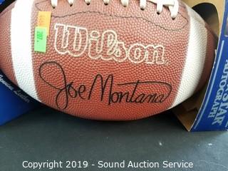 Item Description: Football is facsimile signed by Joe Montana. Lamp works.