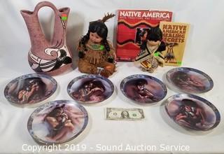 Lot #0319: Native American Plates, Vase, Dolls & Literature