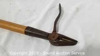 Item Description: Weed puller is dated October 1914, has a cane style handle. Approx. 32", 40", and 60" L.