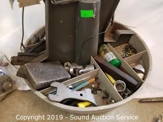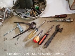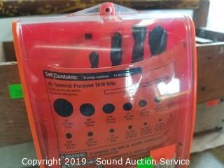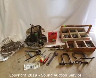 Item Description: Loaded with nails, screw drivers, drill bits & more. Largest wood box is 8" H x 16" x 9".