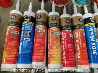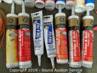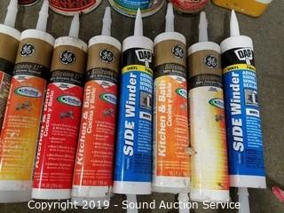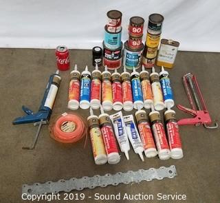 Lot #0205: Various Caulk, Caulk Gun, Wood Stain & More