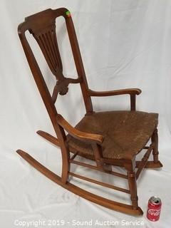 Lot #0133: Woven Seat Vase Splat Back Wood Rocker