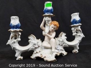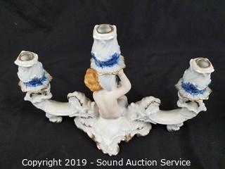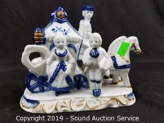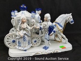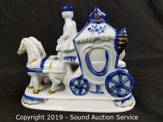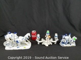 Lot #0209: 2 Blue Ceramic Victorian Carriages & Candelabra