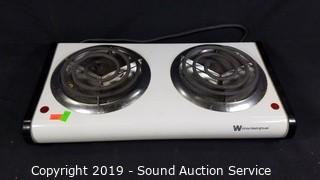 Lot #0173: 2-Burner Counter Top Range & Kitchen Items