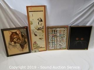 Lot #0026: 4 Pieces of Cat Inspired Artwork