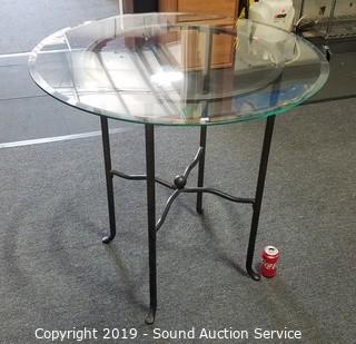 Lot #0240: Beveled Glass Top Metal Base Cafe Table