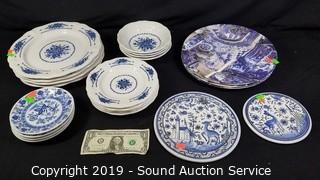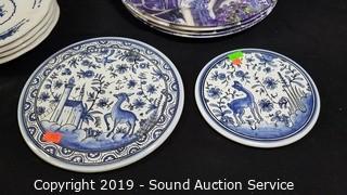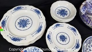 Lot #0194: Blue Print Ironstone Dish Set w/Plates & Trivets