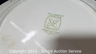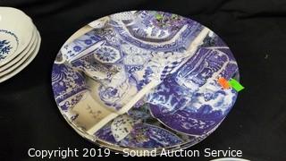 Item Description: Dish set is 12pc, Mayhill Federalist (4 plates, 4 snack plates, 4 bowls, some have chipping on the edge), 4 similar saucers, 2 trivets, and 4 blue willow print fine china plates.