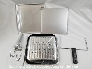 Item Description: NIB. Works. Comes with broiler pan, oven rack, drip pan, broiler rack, cookie sheets and rotisserie attachment. Style #TO23H