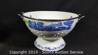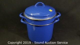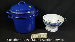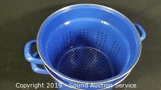 Lot #0176: Enamelware Double Broiler Steamer Pot & Colander