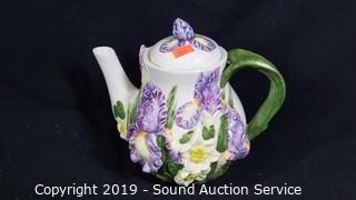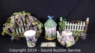 Item Description: Teapot, mug, canister and 2 picket fence silk floral decor.