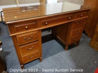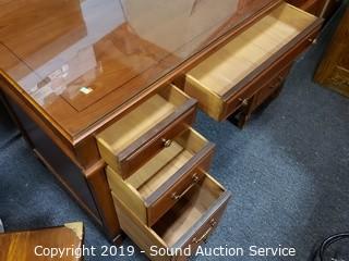 Lot #0271: Nice Glass Top 8-Drawer Desk