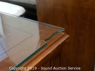 Item Description: Glass has a break on one corner. Approx. 29" H, 45" W, 22" D.