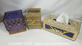 Lot #0156: Purple & Gold Bathroom Accessories & Decor
