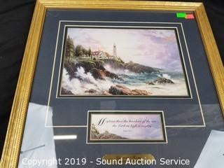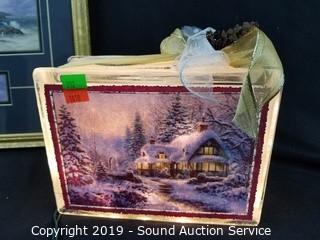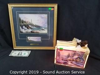 Lot #0212: Thomas Kinkade Framed Print & Glass Block Decor