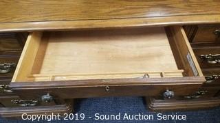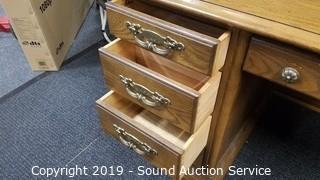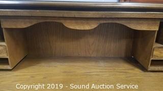 Item Description: In good working condition. Model is RRT688 Mystique. Center drawer has a skeleton key lock with key, when its closed most the other drawers are locked closed, roll top is locked open won't shot all the way don't have a key. Also comes with a few desk top organizers. 41" H x 54" W x 26" D.