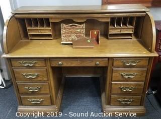 Lot #0014: Vtg. Jasper Cabinet Roll Top Desk