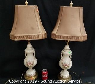 Lot #0085: 2 Beautiful Porcelain Gold Accent Table Lamps