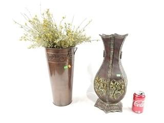 Lot #0213: 2 Decorative Metal Containers / Vases