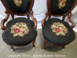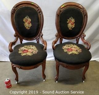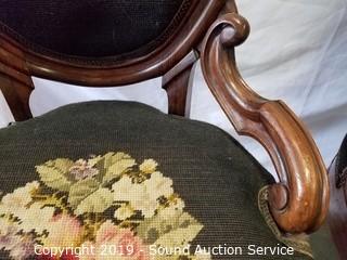 Lot #0071: 2 Vtg. Cameo Back Needle Point Accent Chairs