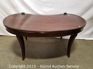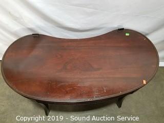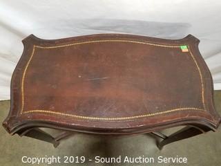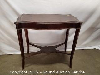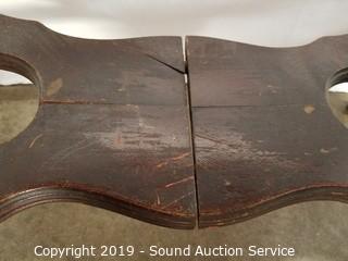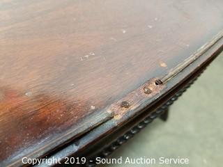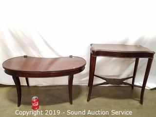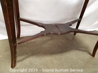 Item Description: The taller one is inlaid top, has a broken stretcher. 24" H x 24" x 14" & 17" H x 35" x 17". Both have wear to the finish, taller more then the shorter one.