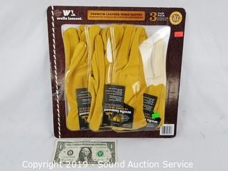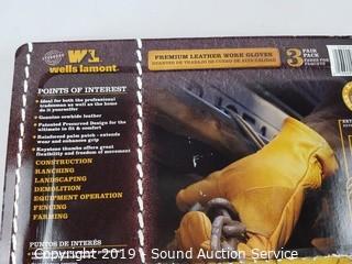 Lot #0185: 3pk Wells Lemont Premium Leather Work Gloves S:XL
