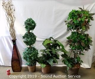 Lot #0075: 4 Lg. Silk Faux House Plant Tree Decor