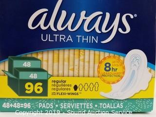 Lot #0080: Always Ultra-Thin Absorbent Pads w/Wings