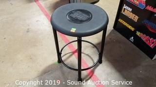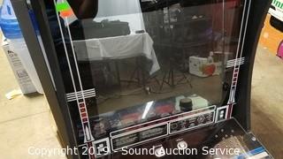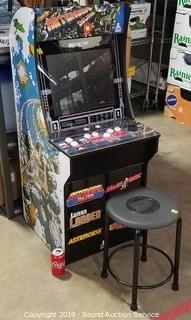 Item Description: Comes with stool. Works but the game selection dial is not working so can only play Asteroids. Comes with owners manual. 46" H x 19" W x 23".