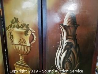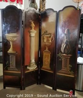 Lot #0228: Beautifully Painted 4-Panel Privacy Screen
