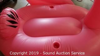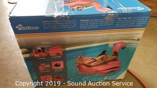 Item Description: Blew up held air, comes with patch kit and original box. 4'ft tall, 6'ft 4" long, 5'ft 8" wide. Can hold 2 people, 2 cup holders, head rest, rapid valve, tether grommets, raft grade material.