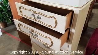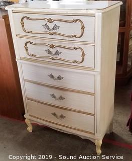 Lot #0021: French Provincial 5-Drawer Highboy Dresser