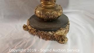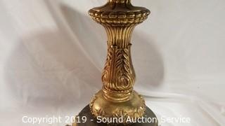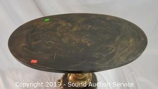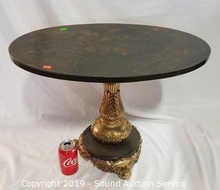 Lot #0007: Ornate Brass Base Tile Top Accent Table