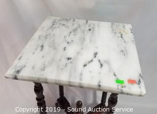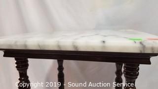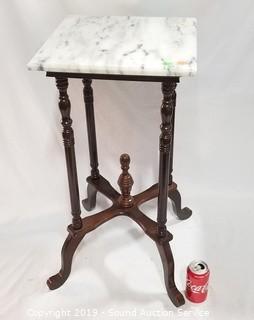 Lot #0044: Ornate Mahogany Base Marble Top Table/Plant Stand
