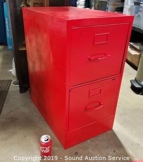 Lot #0232: Red Painted 2-Drawer Metal File Cabinet