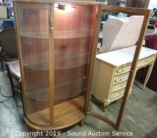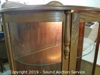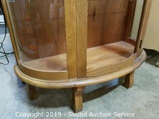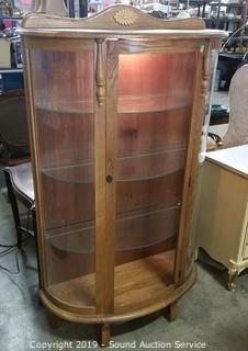 Lot #0058: Vtg. Bow Front Oak Curio Cabinet