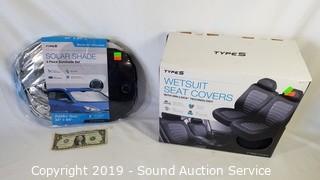 Lot #0305: Wet Suit Vehicle Seat Covers & Sun Shade Set