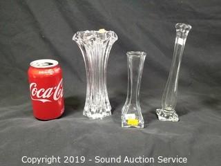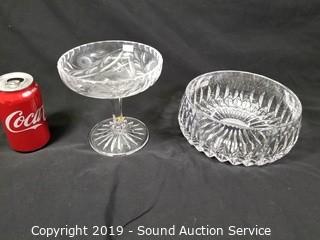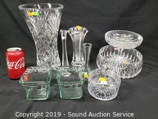 Item Description: Vases, covered dish, compote, bowl, and candle holders. Approx. 3" to 11" H. ATTN: NEW PICKUP WINDOW, 96 HOURS, NO EXCEPTIONS!