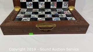 Item Description: Has 2 drawers in the board to hold the pieces, set is complete, board folds in half, brass accents. Pieces feel to be stone. ATTN: NEW PICKUP WINDOW, 96 HOURS, NO EXCEPTIONS!