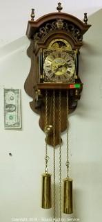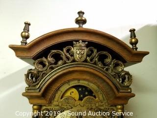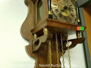 Item Description: In excellent working condition, chimes every hour. Has 2 brass weights. Approx. 19" x 9" x 6". ATTN: NEW PICKUP WINDOW, 96 HOURS, NO EXCEPTIONS!