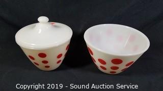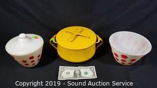 Lot #0073: Dansk Enamelware Pot & 2 Fire King Bowls