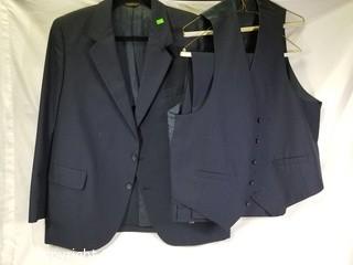 Item Description: Givenchy Paris wool suit (blazer, vest and slacks (30" to 32" waist)), and Palm Beach tailored pin stripe suit (blazer, vest and slacks (38" waist)). None stated size, please come in to preview and try on. ATTN: NEW PICKUP WINDOW, 96 HOURS, NO EXCEPTIONS!