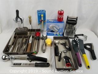 Lot #0118: Kitchen Utensils & Gadgets w/Flatware Trays