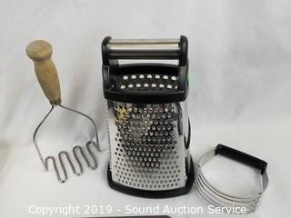 Item Description: 6-speed hand mixer, KitchenAid cheese grater, 2 Wedgwood knives, can opener, bottle openers, hand mixers, MadeSmart 15" x 6" x 2" bin and silverware tray, baster, thermometer, Joseph spatula and spaghetti utensils, and more. ATTN: NEW PICKUP WINDOW, 96 HOURS, NO EXCEPTIONS!