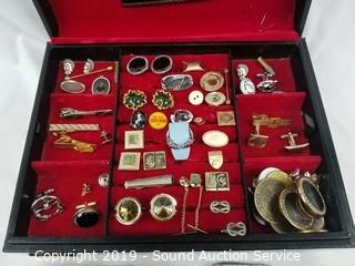 Lot #0333: Men's Jewelry Box w/Cuff Links & Trinkets