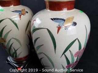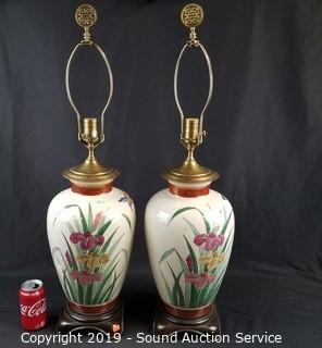 Lot #0018: Pair of Hand Painted Vtg. Table Lamps