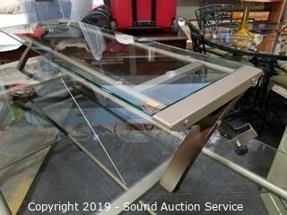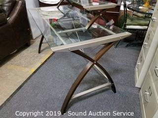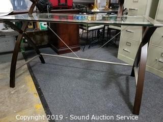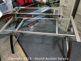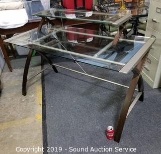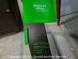 Lot #0305: Sharper Image Modern Glass Top Desk w/Shelf Topper