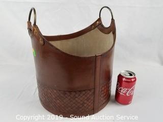 Lot #0020: Unique Leather Handled Basket